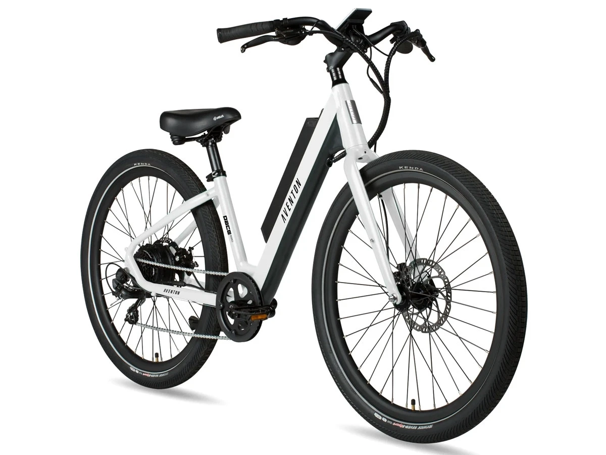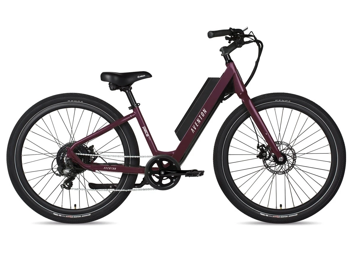 The Aventon Pace 250 is the latest ebike from Aventon! The Pace 250 E-Bike has been updated with a new and improved full colour screen that can be connected to your mobile via an app. The rear hub motor is now both stronger and lighter than the previous version. This bike has been built around a Cruiser geometry, using an Alu frameset and 650B wheels, so they’re super comfortable with the smaller wheel/bigger tyre combination making them perfect for potholed city roads and gravel paths alike. The 250Watt brushless motor has 5 levels of pedal assist powering you up to 15mph – which tied into the 7 speed Shimano gearing – will mean that riders can fly up the steepest of hills. Cable pull disc brakes will mean they can come down safely and securely!