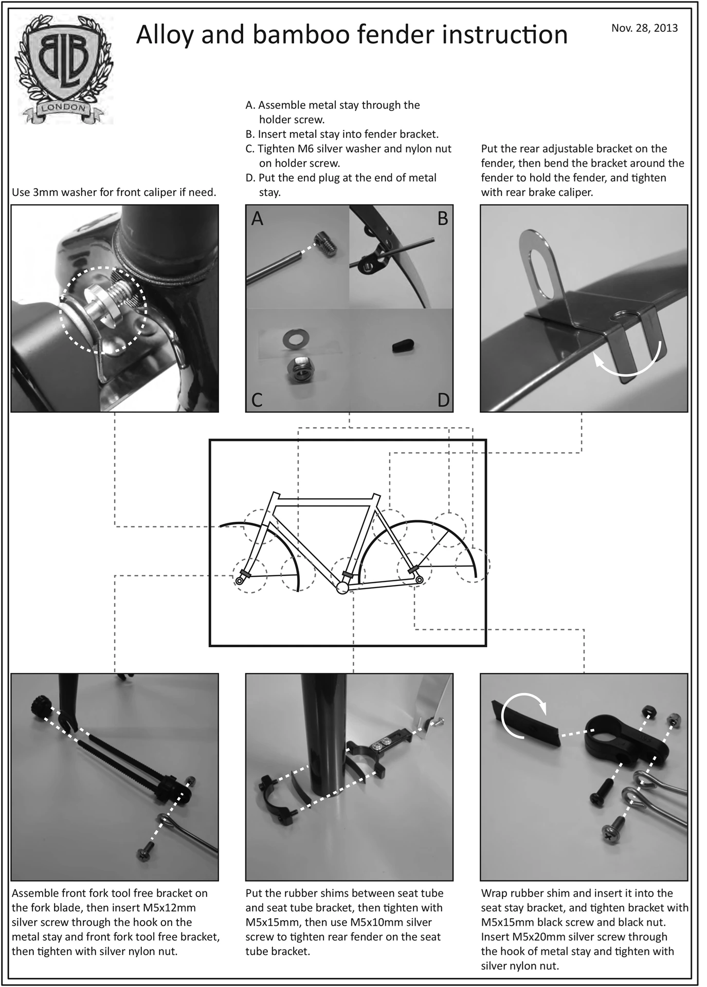 They are supplied with an adjustable clip-on system to fit any bike frame, and unique CNC’d brake cut outs to fit slim brake clearances and frames without mudguard drillings.
