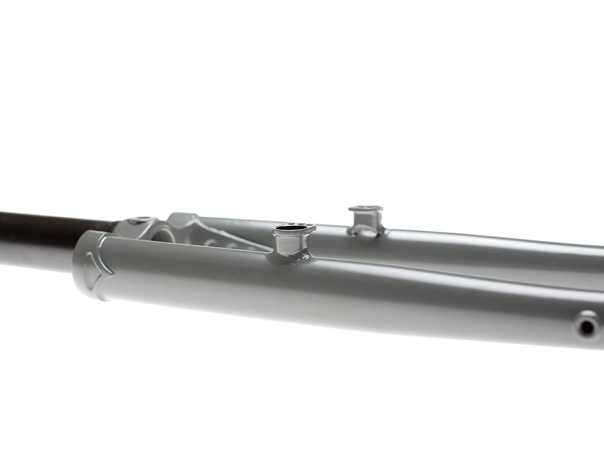 The BLB Hitchhiker Touring Fork comes equipped with fender mounts that allow up to 40c tyres and rack/pannier mounts. Removable Canti pivots and post disc brakes mounting (max. 160mm).