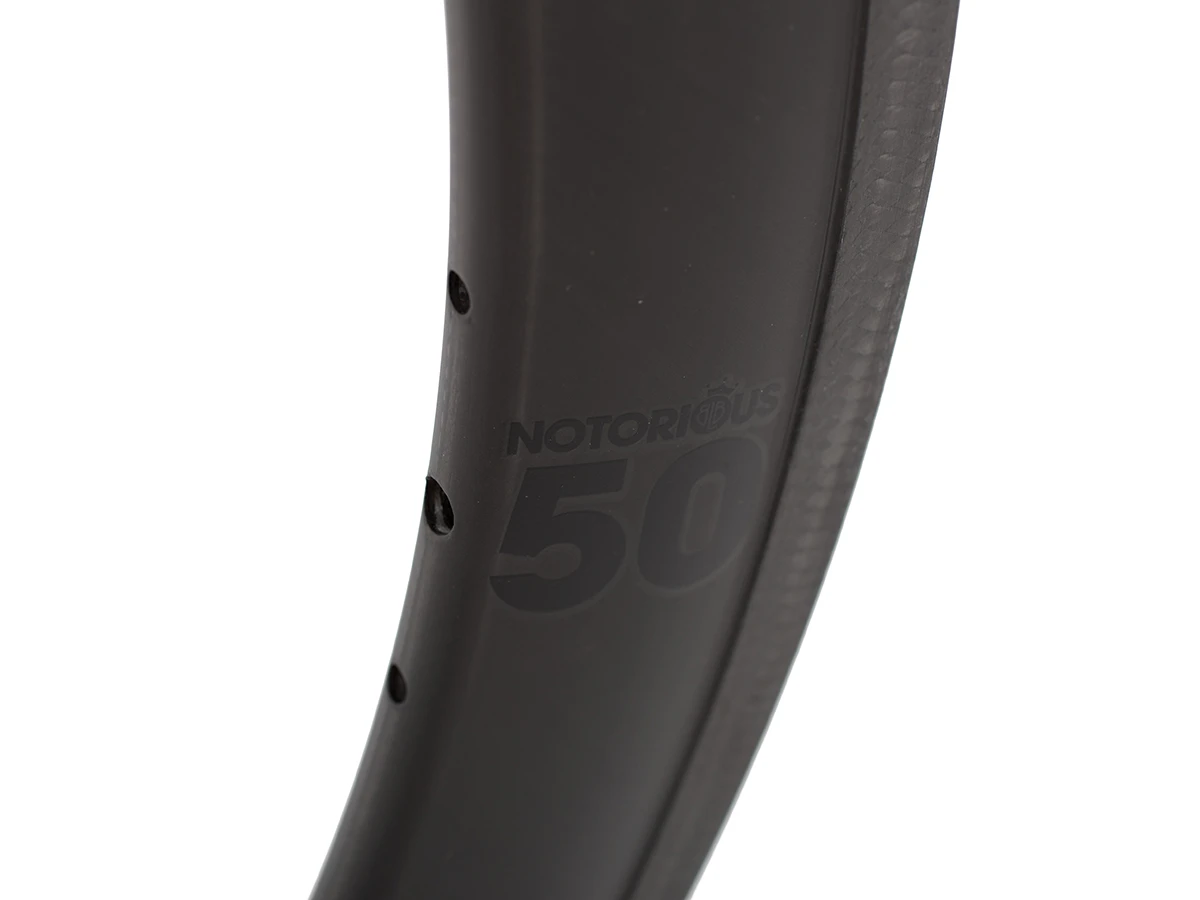 BLB Notorious 50 – our signature 3K tough carbon weave deep section clincher rims, suitable for urban riding!