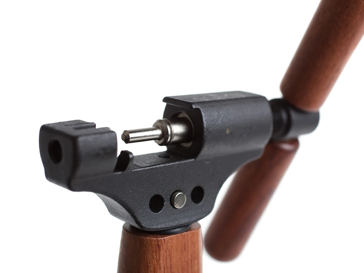 Smooth and slick 7-11 speed road chain splitter with rose wooden handles and a built in bottle opener. Include double driving pin for exchange and repair.