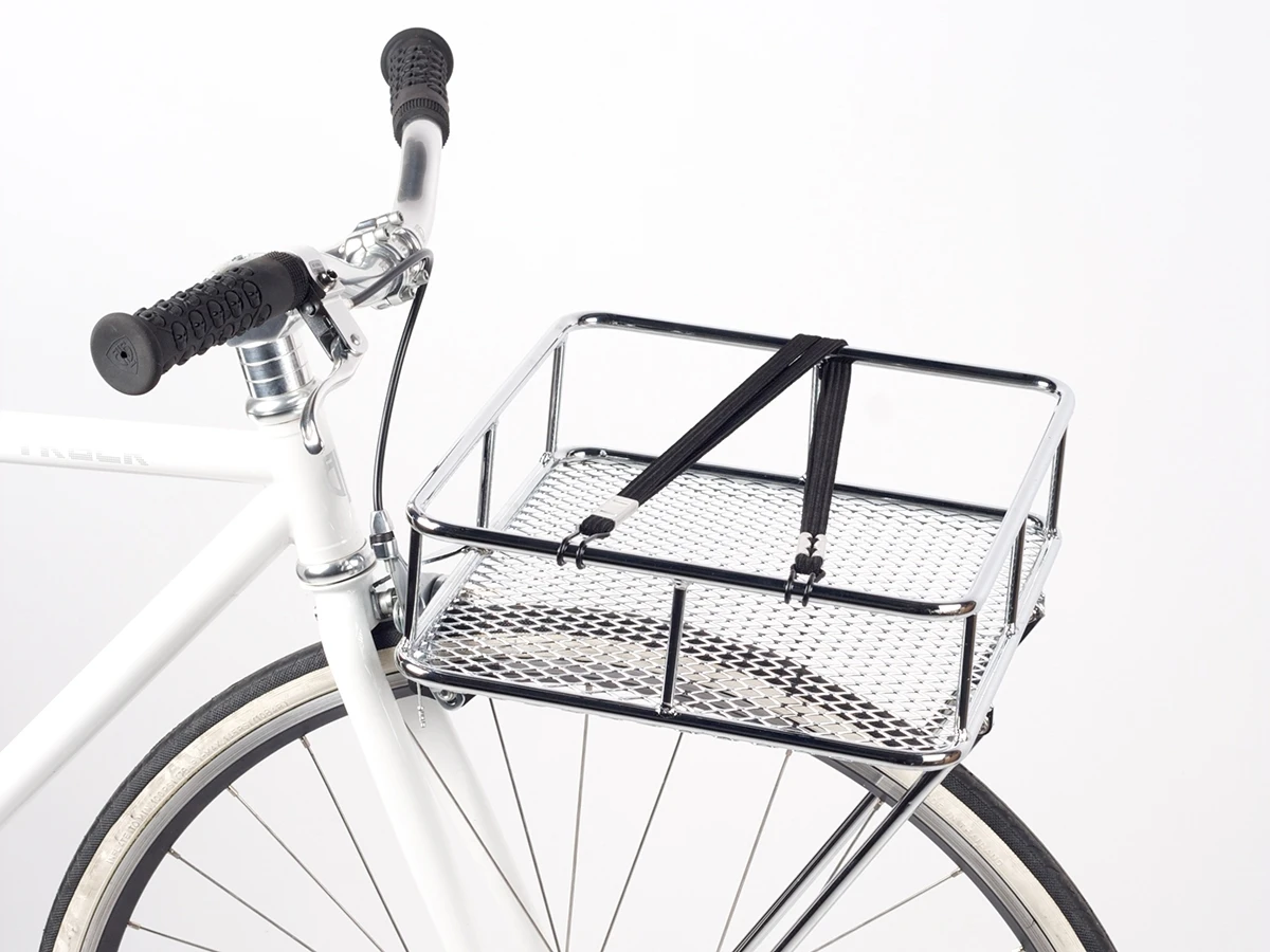 The BLB Take Away Tray (chrome) is an elegant front bicycle tray that is easily assembled without the need for clamps and brackets, simply fitting directly to your front wheel axle and front brake hole. Supplied with cargo straps for securing your load, the Take Away tray is super convenient and will have you covered no matter your load. It will cary up to a 7kg load.
