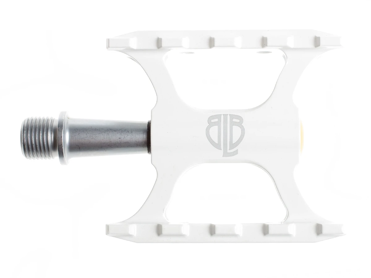 The BLB Track Pedals (white) are elegant 6061 extruded CNC machined double sided track pedals with sealed bearings that ensure smooth and durable movement.