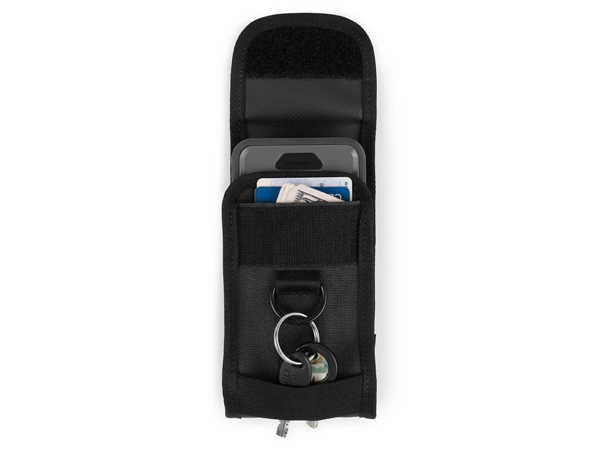 Super sturdy Phone Pouch that fits almost any phone. Elastic gussets inside make sure that phones of any size are secure in the pouch. Reflective hits on the front keep you visible at night.