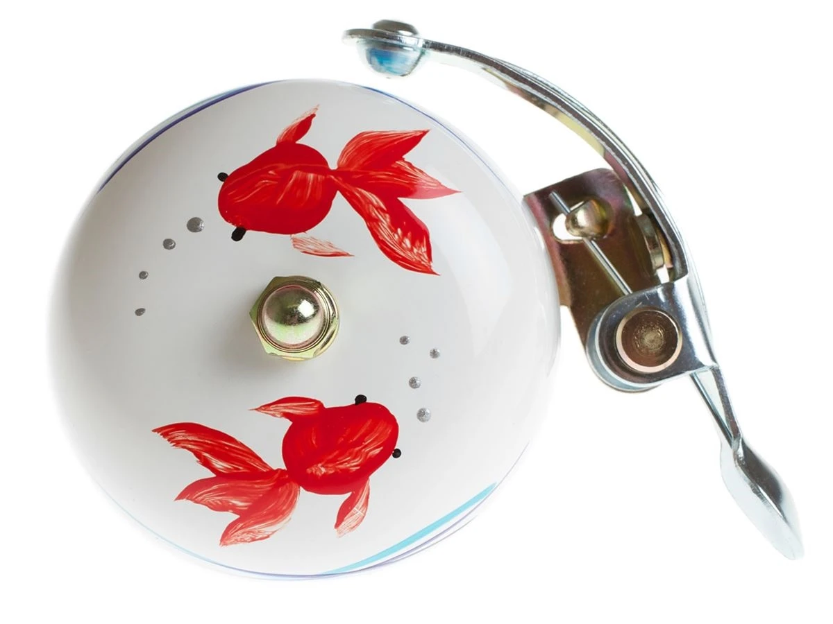 Crane bells are made in Osaka, Japan. This traditional design (koi) is timeless and has beautiful clear ring tones. Beautifully hand painted bells from Crane, designed to fit pretty much any handlebar, that is plenty loud – 50% louder than the little brass bells that aren’t quite loud enough, and louder even than your typical “ding-ding” bells. Every bike should have one.