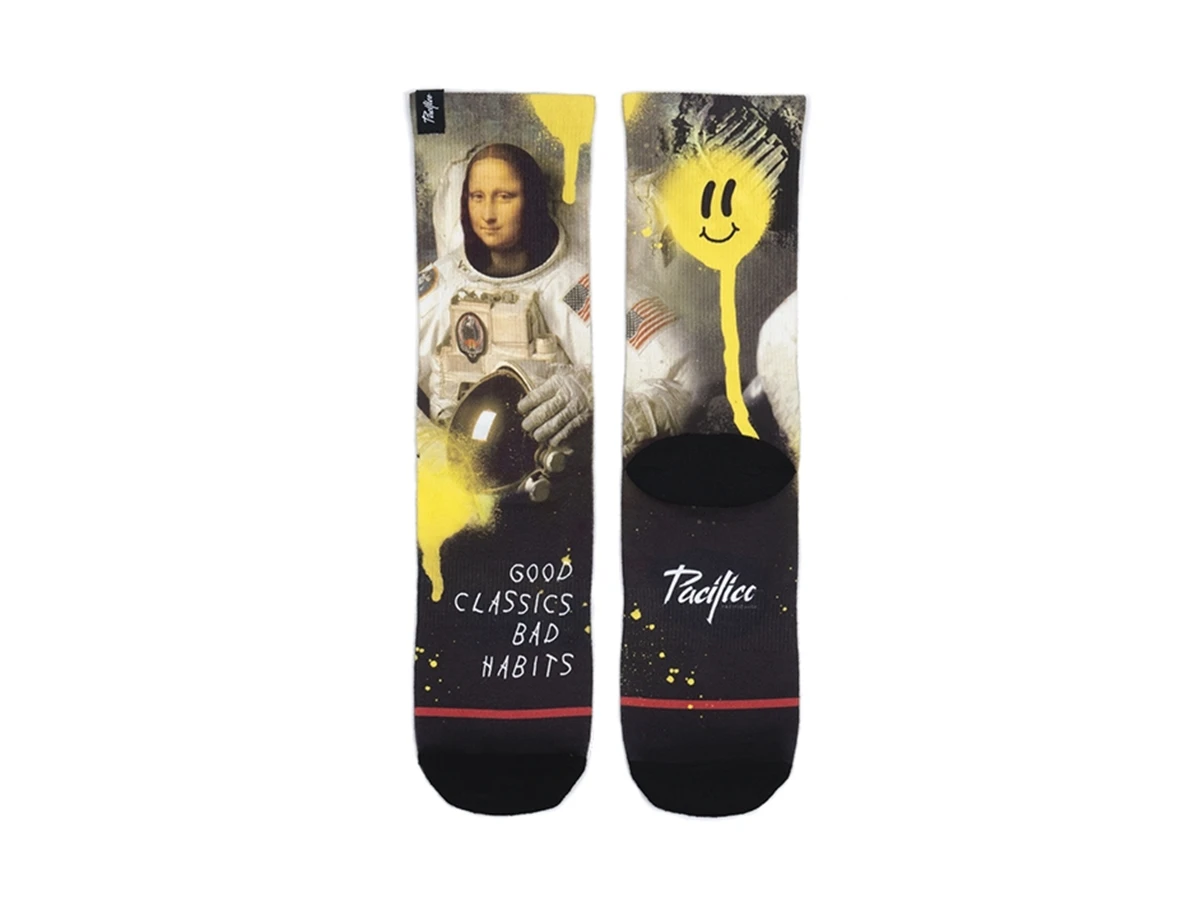 For enhanced comfort and durability, the Bad Habits Socks have reinforced heel and toe, as well as an elastic arch support and a self-adjusted cuff to fix the sock on your feet. Signature logo at the sole.