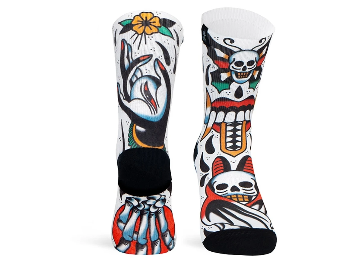 The SKULL socks are part of the capsule collection TATTOO SERIES, the new socks in collaboration with three Tattoo Artists from Barcelona. Here is Chuli Gonzalez, giving the a dark and classy touch to the collection with a clean Traditional tattoo.