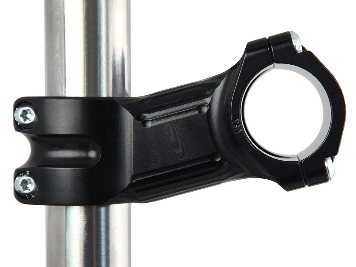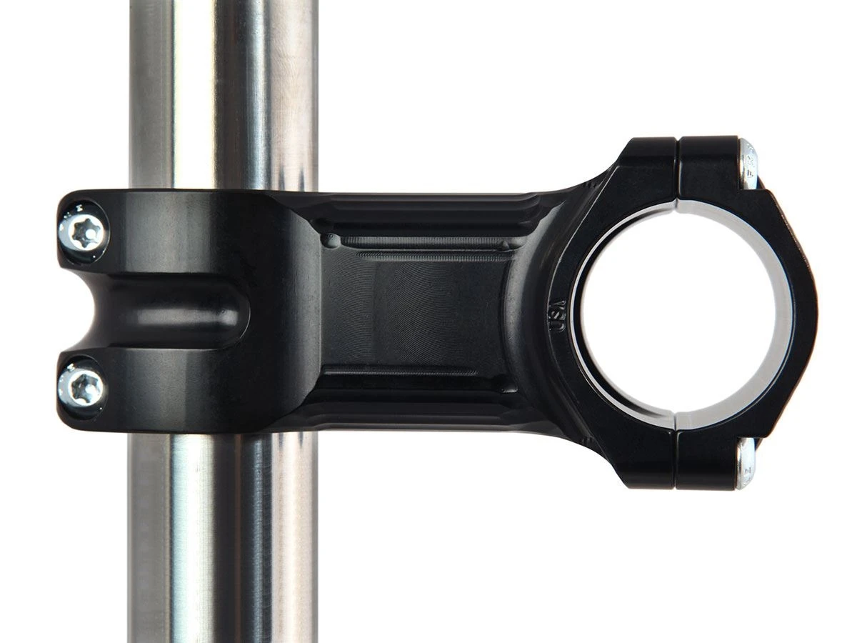 The stems come in a zero rise and a +/- 15 degree rise. Lengths are 50, 70 and 90mm. All screws are the same pan head T25 Torx type screws in stainless steel. Why Torx? Because they work so well, and are the same wrench size as the ubiquitous rotor screws all makers use. All screws are high strength stainless steel with the popular T25 head. Made in Chico, California with US sourced 2024 aircraft alloy.
