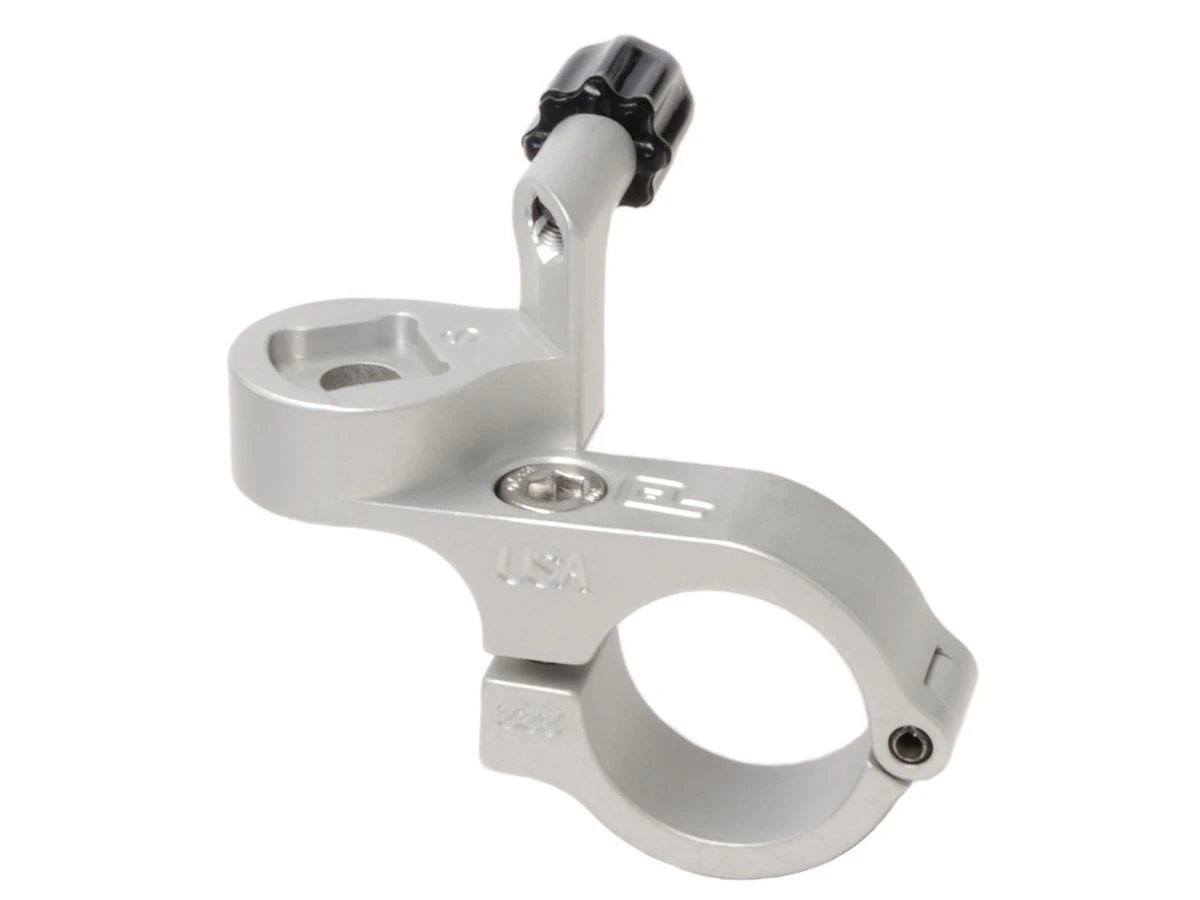 Thumbies have a hinged clamp for an easy installation and fit handlebars with a diameter of 22.2mm. The clamp is raised up to give clearance for hydraulic brake levers.