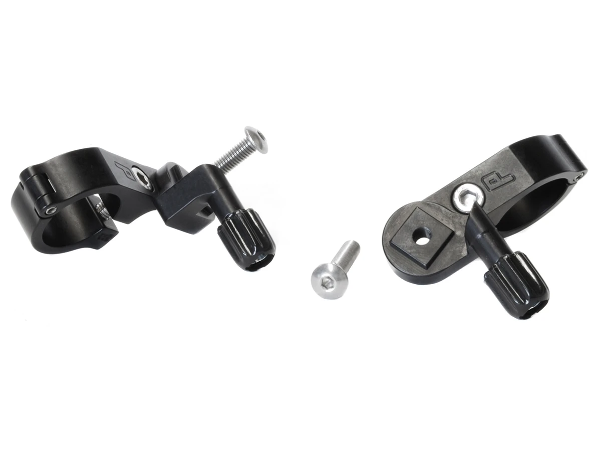 Thumbies have a hinged clamp for an easy installation and fit handlebars with a diameter of 22.2mm. The clamp is raised up to give clearance for hydraulic brake levers.