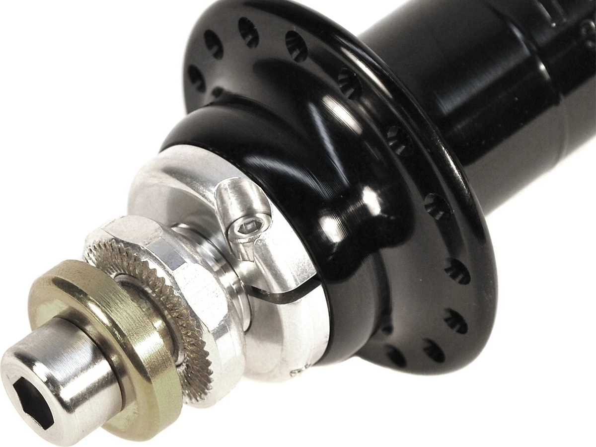 When designing this modern version of the WORD, they spread the flanges out as far as possible while leaving room for freewheel threading. This allows the WORD to be built up as a strong dishless wheel. Over the years they’ve also improved upon the original axle and bearing adjustment mechanism.