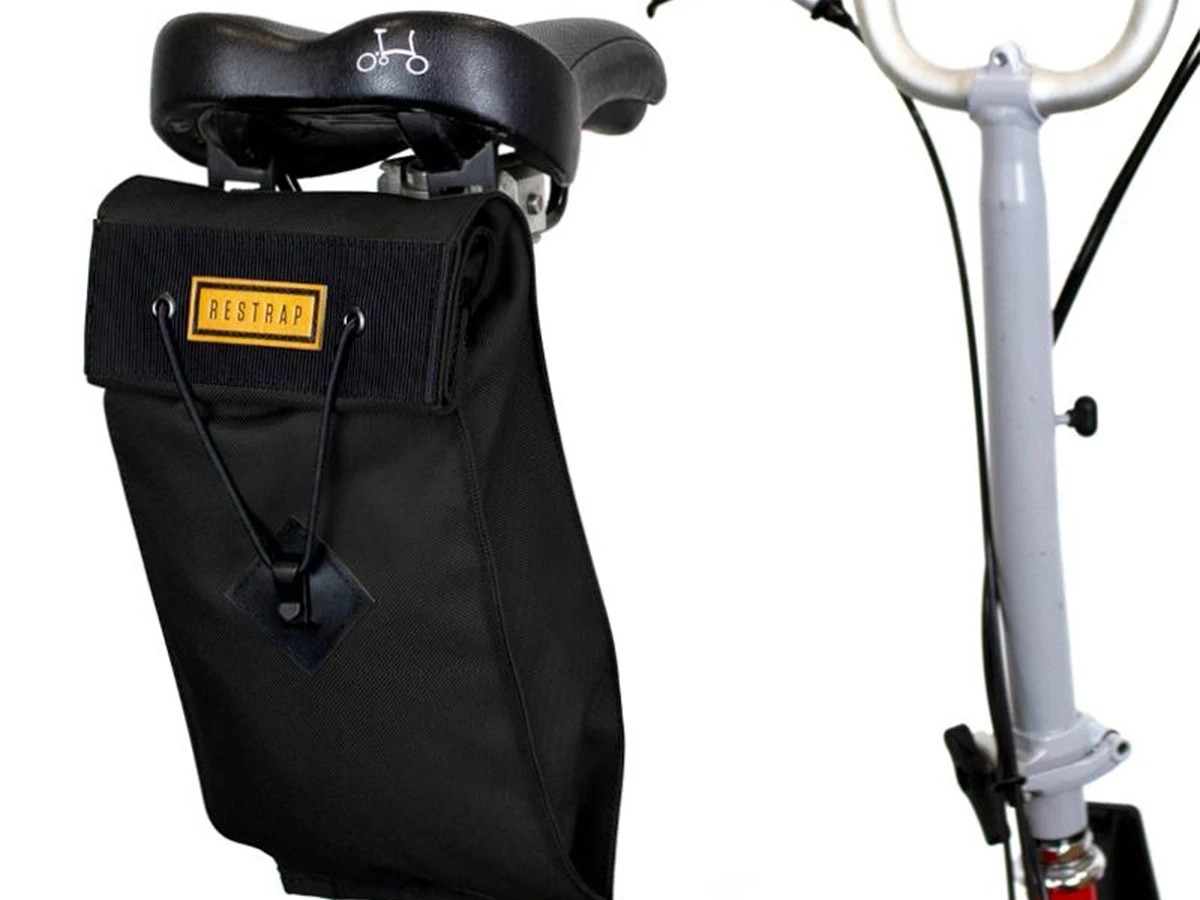 The City Saddle bag is designed for any folding bicycle. Constructed from waterproof fabrics, it comes in two sizes to accommodate a range of gear, from clothing, to off the bike footwear, to tools. Both sizes are tape sealed and completely waterproof. The bag also comes with an extendable bottom strap which fits easily around the suspension block on all Brompton bicycles.