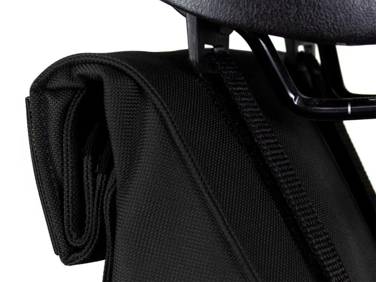 The City Saddle bag is designed for any folding bicycle. Constructed from waterproof fabrics, it comes in two sizes to accommodate a range of gear, from clothing, to off the bike footwear, to tools. Both sizes are tape sealed and completely waterproof. The bag also comes with an extendable bottom strap which fits easily around the suspension block on all Brompton bicycles.