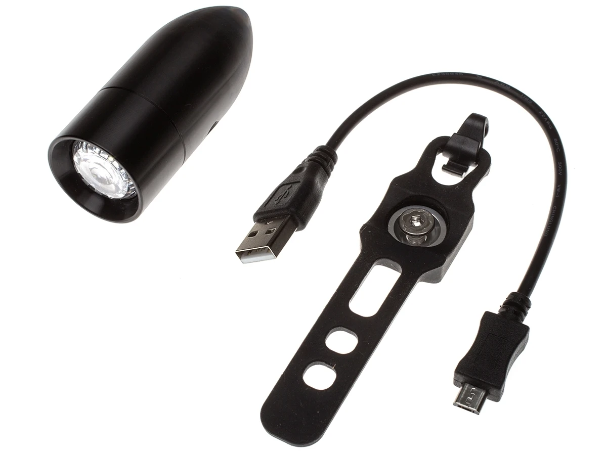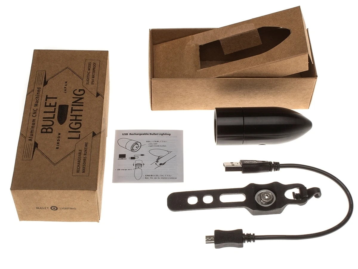 Front light has 40 lumens and 3 modes (high, low and flash). A USB charge cable is supplied and it will take 2.5hrs to fully recharge. Rindow Bullet will last 3 hours on high, 6 hours on low and over 50 hours on flash mode.