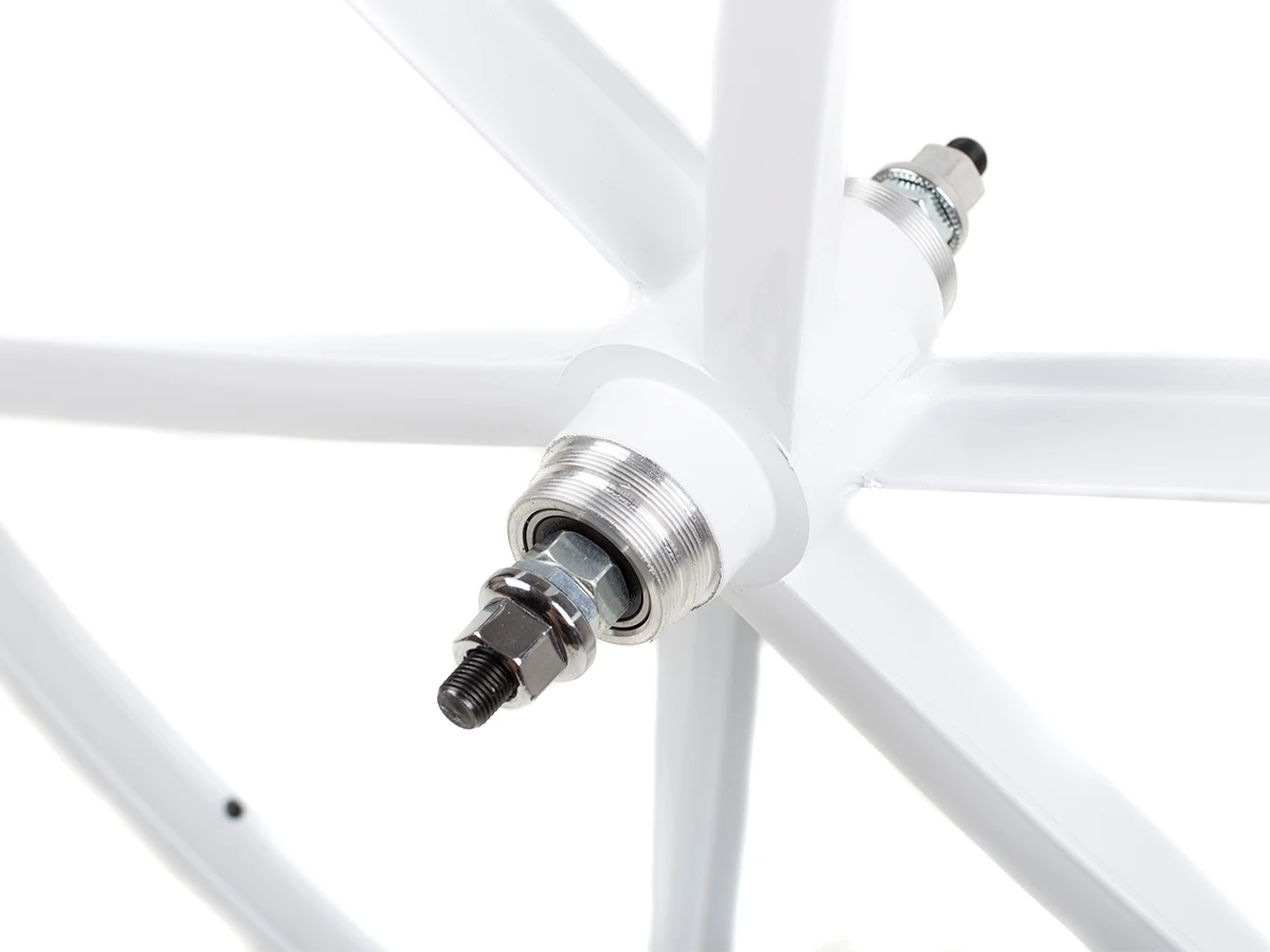 The Teny 6 Spoke rear wheel (white) is made from very light magnesium alloy composite that offers a very good comfort. Sealed bearings ensure smooth ride and rear wheel comes with fixed/free hub.
